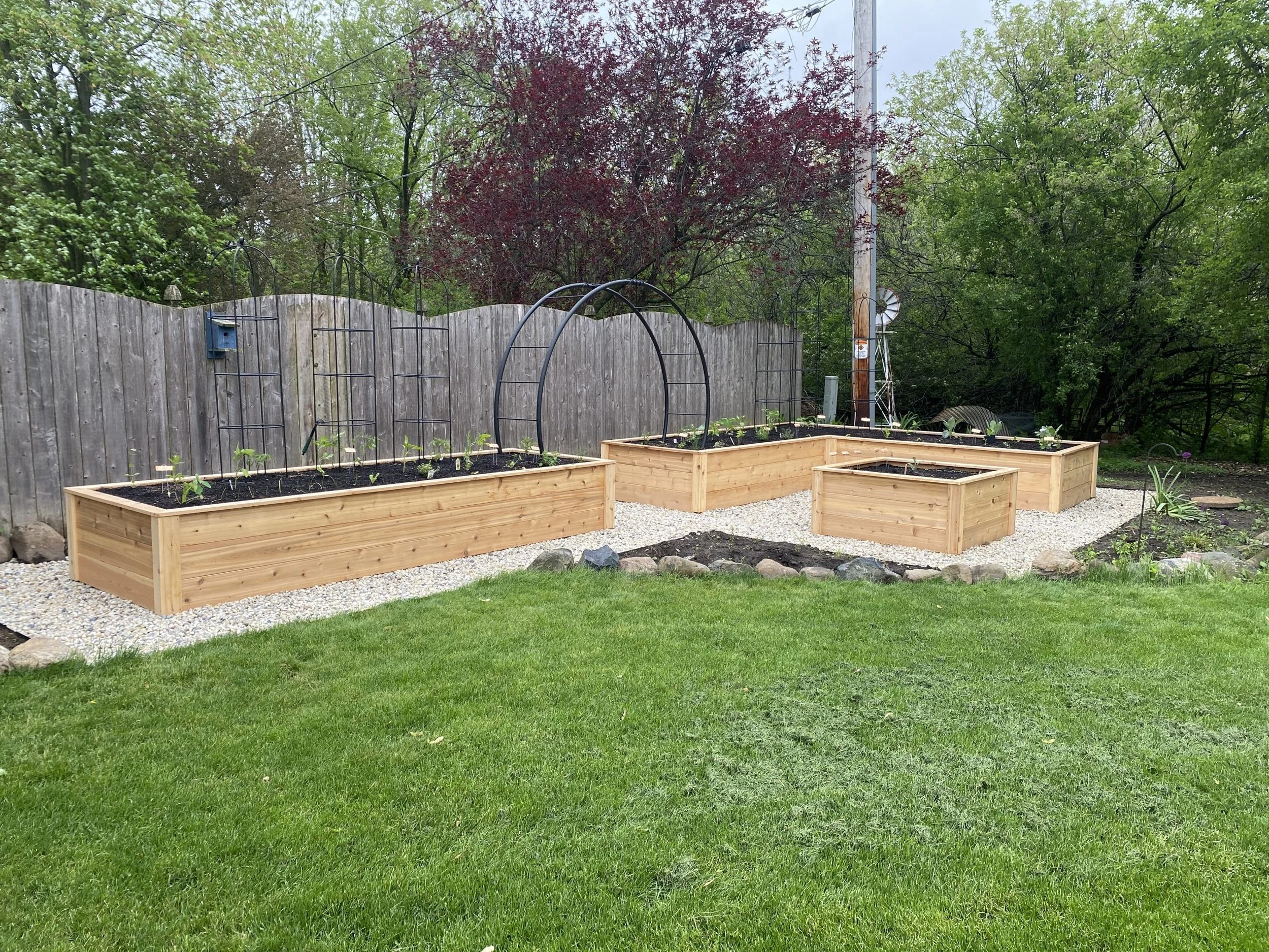 I know you’ve heard me say that gardens can be a place where the whole family comes together to spend time (you know, instead of in front of a television screen), and this is living proof! We just installed this beautiful kitchen garden for Sandy, the mother of a client that we worked with last year. Now Sandy is adding a garden to her property, so mother and daughter can grow together.